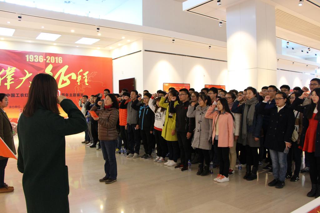 本次“长征精神伴我行”活动包括纪念长征胜利80周年徒步行;赴辽宁省图书馆参观“伟大的征程”—纪念中国工农红军长征胜利80周年主题展览;入党宣誓仪式。同学们从浑南校区东门出发,沿创新路,徒步到达终点辽宁省图书馆。在参观主题展览过程中,同学们了解红军历史,深刻体会长征精神的内涵,决心在新的长征路上传承和弘扬长征精神。全体党员在纪念中国工农红军长征胜利80周年主题展览厅里举行了入党宣誓仪式,铿锵有力的誓词回荡在每名党员的心中。