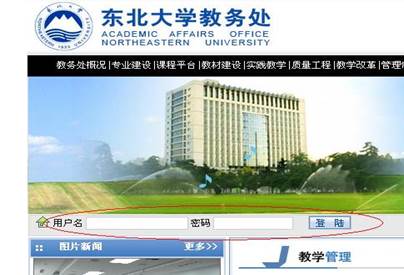 (1)打开浏览器,在地址栏中输入http://aao.neu.edu.cn/,回车,进入教务处网站;