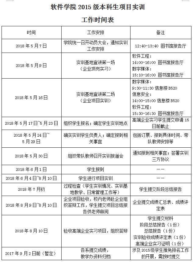 高端企业实习同学需严格遵守企业实习规定,并填写《高端企业实习证明》(附件十二),明确写明实习部门、实习岗位、实习时间,并加盖企业公章。实习岗位必须为专业相关技术岗位,实习时间必须包含全部实训时间,即在6月4日以前(含6月4日)至8月10日以后(含8月10日),否则不予承认高端企业实习,随下一年重修。