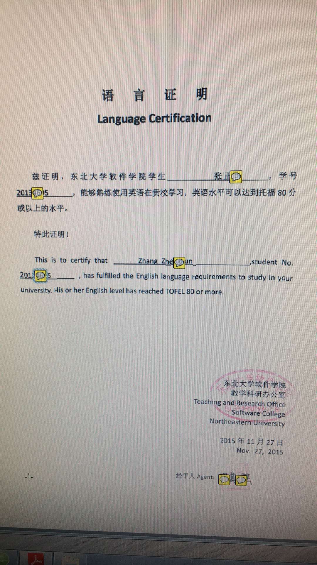 如无法提供成绩单请提供语言证明信(参考模板
