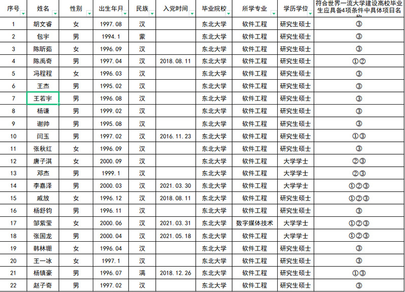 根据《2022年辽宁省选调生工作公告》及学校具体工作安排,经个人提交、球友会审核 ,确定以下员工符合2022年辽宁省选调生报考条件(注:四项条件是指:1、中共党员(含预备党员);2、在选调高校就读期间,担任员工干部1学年及以上;3、选调高校就读期间,获得校级及以上表彰奖励;4、具有参军入伍经历),特此公告。本公示自即日起5日内(10月9— 13日),凡对上述推荐人选有意见者,请实名以口头或书面的形式向员工工作办公室反映。