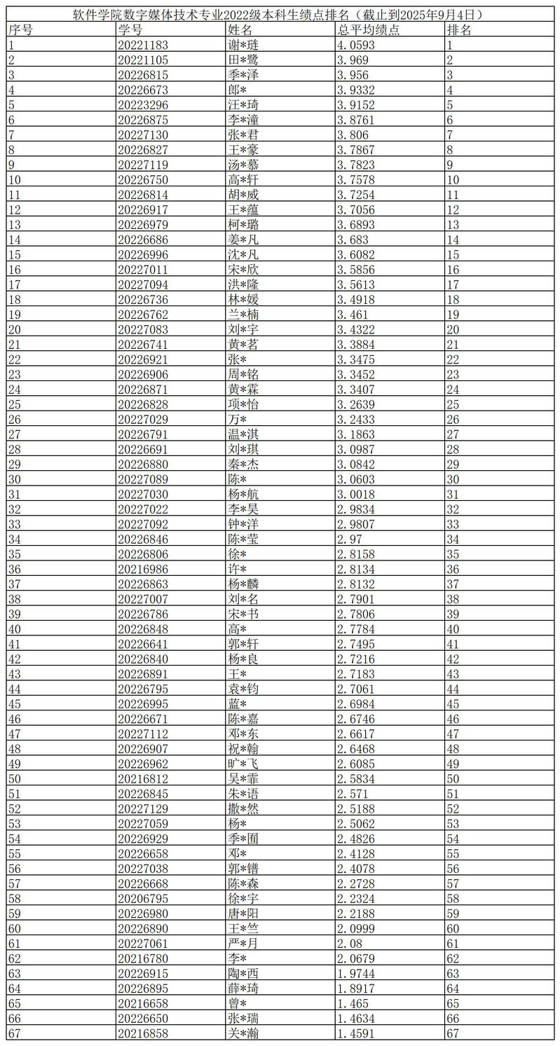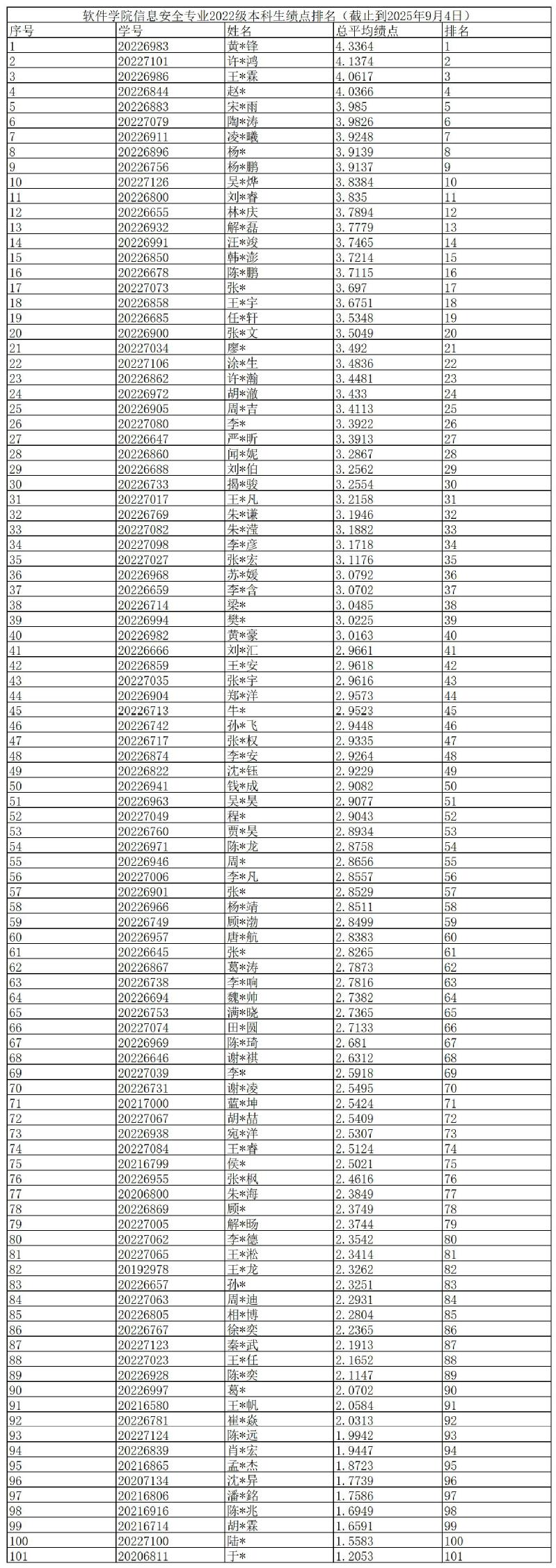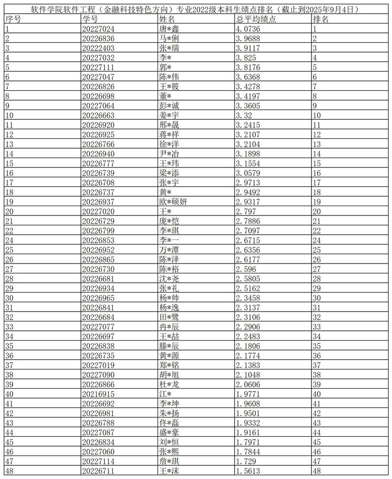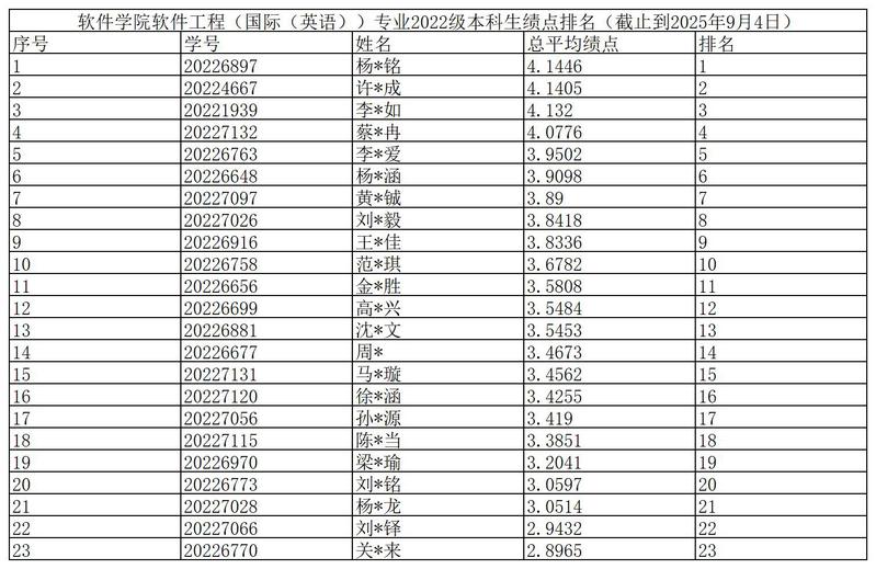 球友会22级本科生绩点排名公示(截止到2025年9月4日)